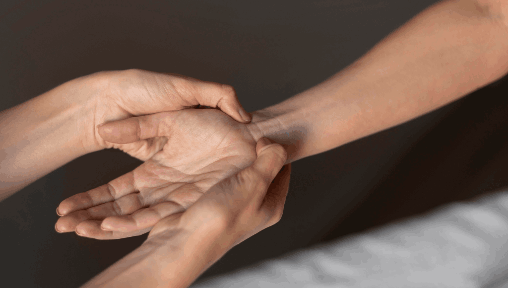 Area pegelangan tangan merupakan titik efektif meredakan stres. Lakukan pijatan dengan tekanan yang pas selama 5-10 detik secara bergantian kanan dan kiri. Itu bisa membuatmu menjadi lebih tenang.